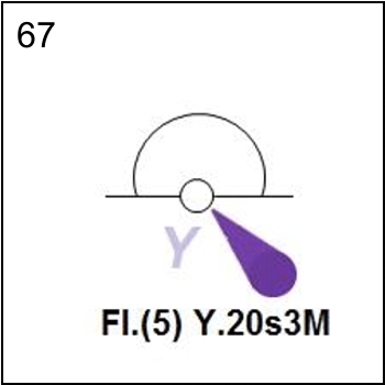 740. Con riferimento alle caratteristiche dei segnalamenti marittimi riportate in una carta nautica, cosa indica la sigla alfanumerica posta lateralmente alla boa luminosa di fianco rappresentata?